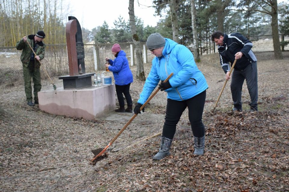 Фотофакт: сотрудники Хотимской центральной и детской библиотек навели порядок на месте захоронения еврейского населения