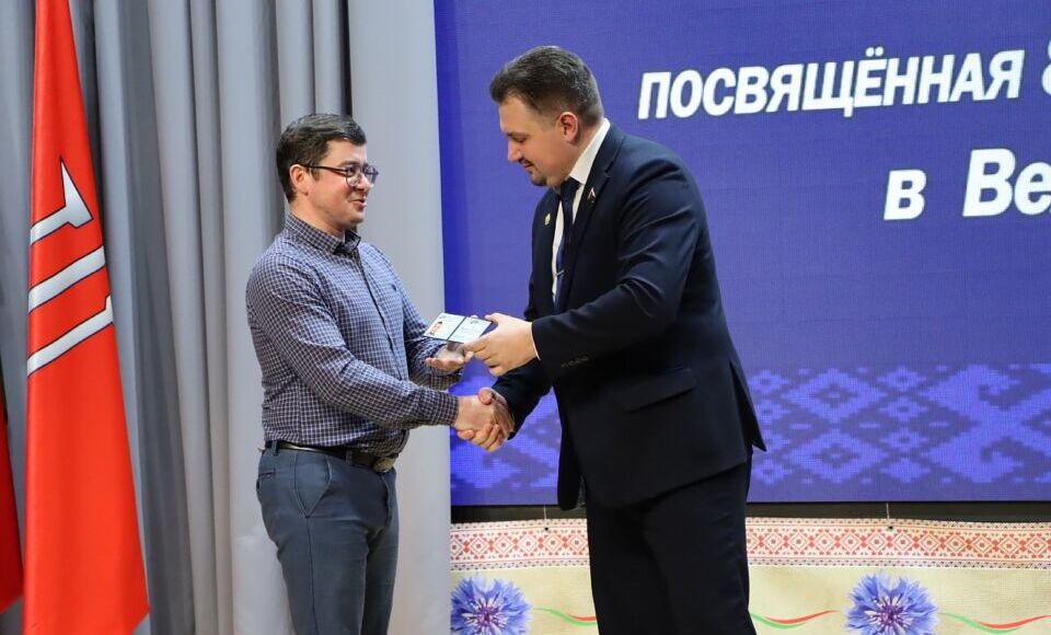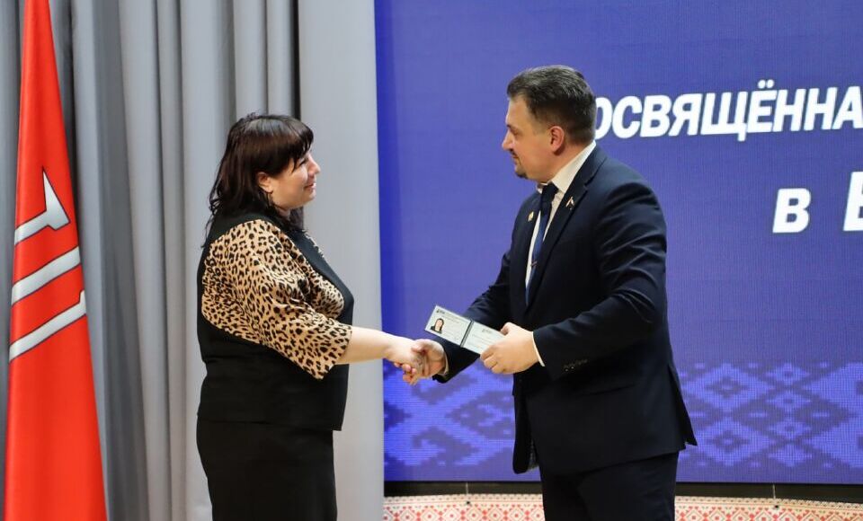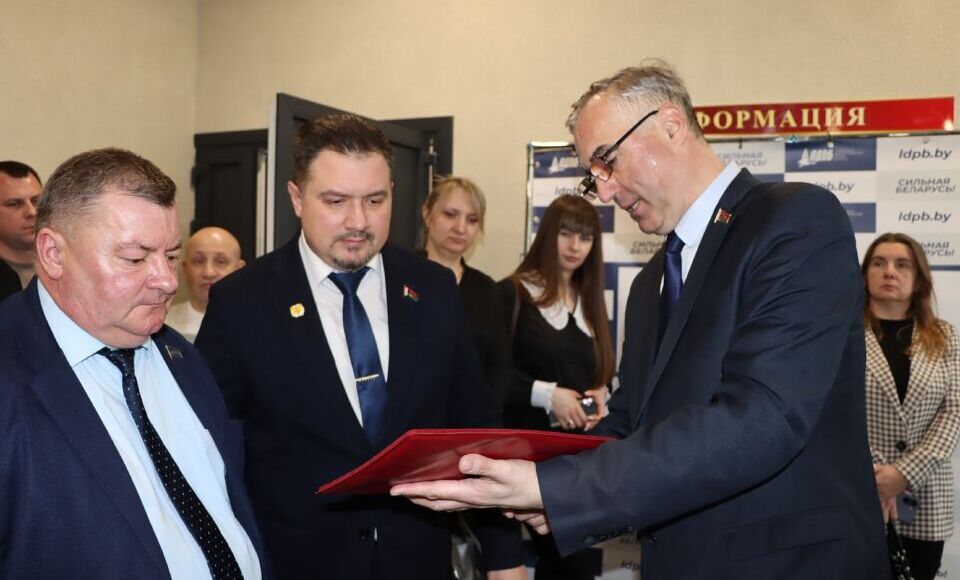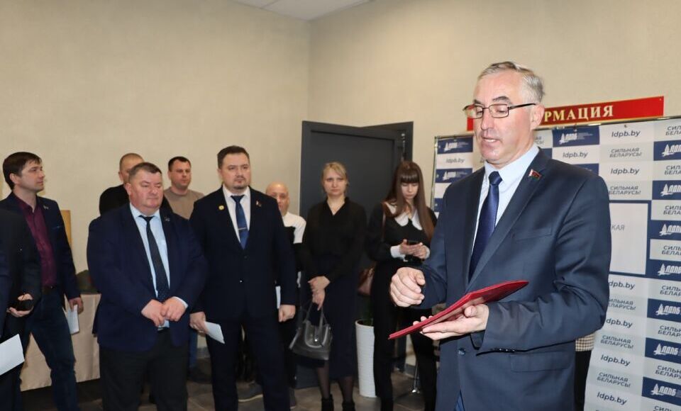 В завершение выступления Александр Лободырёв вручил партийные билеты членам партии, а также подарил Хотимской районной организации в честь праздника фотозону ЛДПБ. Самые активные члены партии были отмечены памятными сюрпризами.