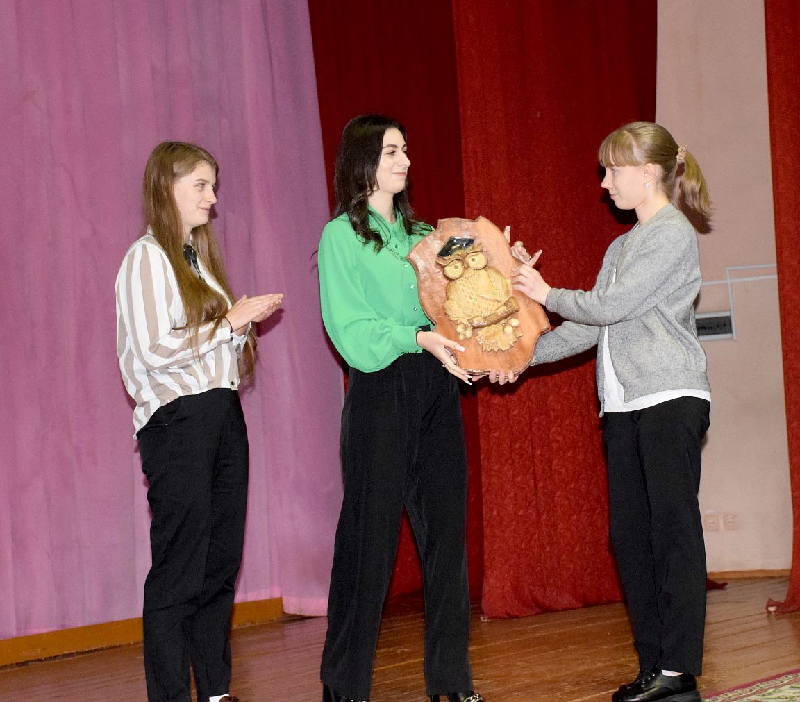 С напутственными словами к молодым специалистам: Аните Палакян, учителю химии и биологии Беседовичской средней школы, Оксане Воропаевой, воспитателю детского сада Великолиповской базовой школы, обратилась молодой специалист 2020 года Мария Сычёва, заместитель директора по учебно-воспитательной работе Великолиповской базовой школы, которая передала им символ мудрости – сову.