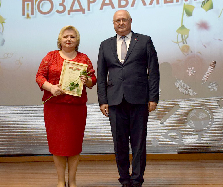 За многолетнюю плодотворную работу, высокий профессионализм, значительный личный вклад в воспитание подрастающего поколения учителям вручили почетные грамоты и благодарности. Грамотой главного управления по образованию Могилёвского областного исполнительного комитета были отмечены Елена Старостенко, учитель начальных классов СШ № 2, Наталья Андреева, воспитатель детского сада № 3, Ирина Меркуленко, заведующий детским садом № 3. Грамота Хотимского районного Совета депутатов была вручена Артему Хилькевичу, учителю истории Тростинской базовой школы. Почетной грамотой районного исполнительного комитета за многолетний добросовестный труд в системе образования была отмечена Инна Гракова, воспитатель детского сада а/г Березки. Ряд наград отдела по образованию райисполкома педагоги Хотимщины принимали из рук начальника отдела по образованию Олега Ткачева. Грамотой федерации профсоюзов отмечена Елена Кудрявцева, учитель белорусского языка и литературы СШ № 1, Зоя Цейтлина, учитель начальных классов СШ № 1, грамотой районного комитета профсоюза работников образования и науки – Сергей Федосов, руководитель по военно-патриотическому воспитанию СШ № 1, Елена Видусова, воспитатель детского сада № 3, Инна Авсеенко, педагог-психолог Центра коррекционно-развивающего обучения и реабилитации.