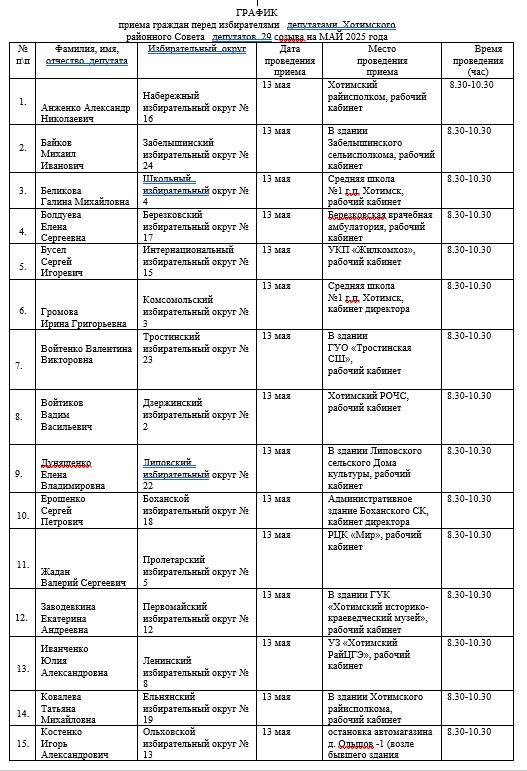 13 мая состоится прием граждан депутатами Хотимского районного Совета депутатов 29 созыва hotimsk 10 мая 2025 9:16 Теги прием граждан