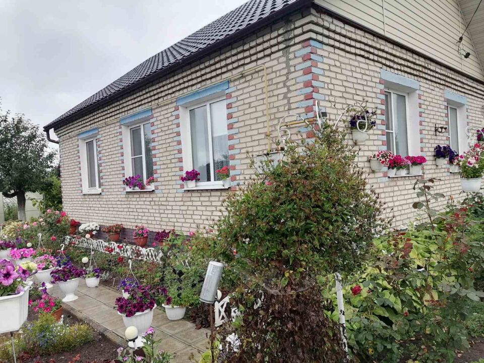 Цяжка прайсці міма, не спыніўшыся каля іх дома. У палісадніку і на прысядзібным участку ўсё літаральна патанае ў роскашы прыроднай разнастайнасці. Кветкі тут усюды і розныя. Нават на сценах дома падвешаны ў прыгожых вазончыках, пастаўлены і на вокнах.