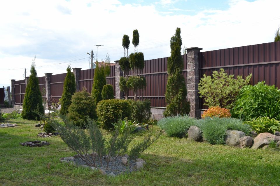 Дом с красивым и ухоженным участком – мечта многих хозяек, героиня этой публикации не стала исключением. Еще в период строительства их семейного гнездышка, Людмила АЛИЕВА начала закупать растения для своего дворика и планировать создание зеленого сада. Так на участке семьи Алиевых появились различные деревья, кустарники, цветы. Одним из первых приобретений стали туи западные, сорта смарагд, которые были закуплены совсем маленькими саженцами около 10 сантиметров в горшочках для высадки во дворе. Сложно представить, что из таких небольших саженцев за 9 лет вырастет такая красота, более 2 метров высотой. По рассказам хозяйки за это время ни одно растение не погибло. Все они превратились в прекрасные деревья, а Людмила сама и не заметила, как увлеклась вечнозелеными растениями. Уход за этими многолетниками превратился в ее хобби, которое доставляет только удовольствие. Ведь после работы над ними, во дворе появляется приятный результат, который радует глаз. Теперь чего только не встретишь из вечнозеленых растений на их участке: лиственница европейская «Пендула», туи разных форм, ель «Глаука Коника», тсуга, казацкий, китайский, блю, чешуйчатый можжевельник и многое другое.