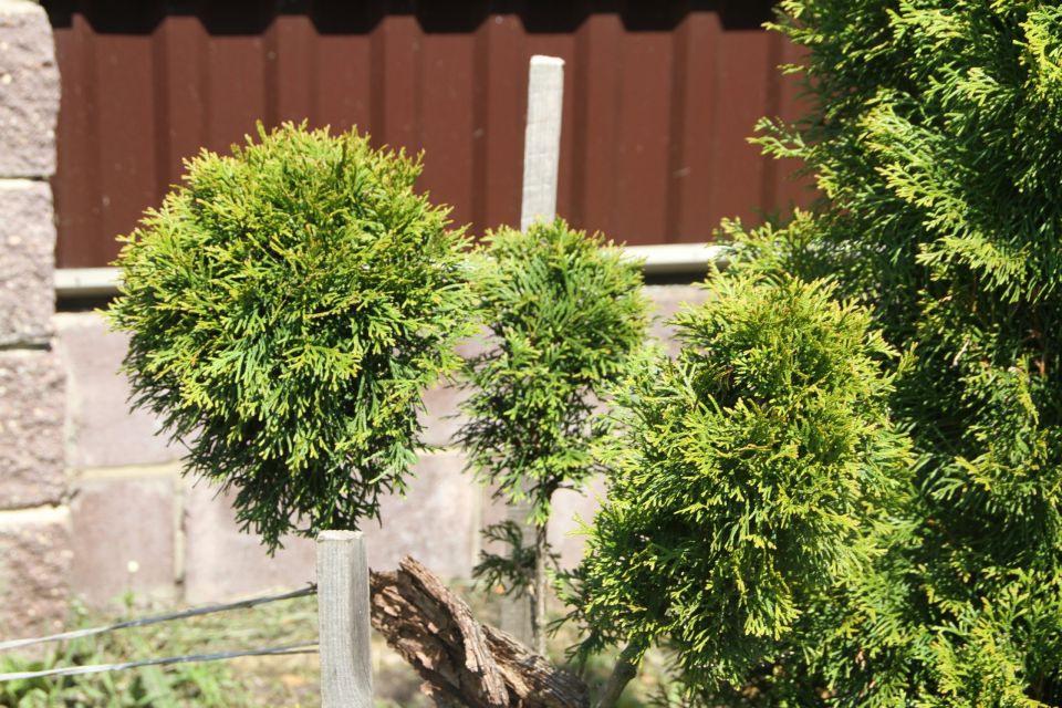 – Как и для любого растения стрижка – это стресс, и ему требуется время на восстановление. Все туи стригу по-разному, но в основном сохраняю форму конуса, лишь освежая и подравнивая ее. В этом году решила поэкспериментировать и сделать форму нескольких шаров на одном стволе и спираль. Для получения красивого результата уйдет немало времени, чтобы форма стала более выразительной, и образовался нужный размер. Думаю, результат будет заметен только через год. Привычные для многих невысокие шары, получаются очень красивые и плотные из специального сорта туи – даника. К сожалению, большинство моих растений еще находятся в стадии формирования кроны для стрижки, но планы у меня на них грандиозные.