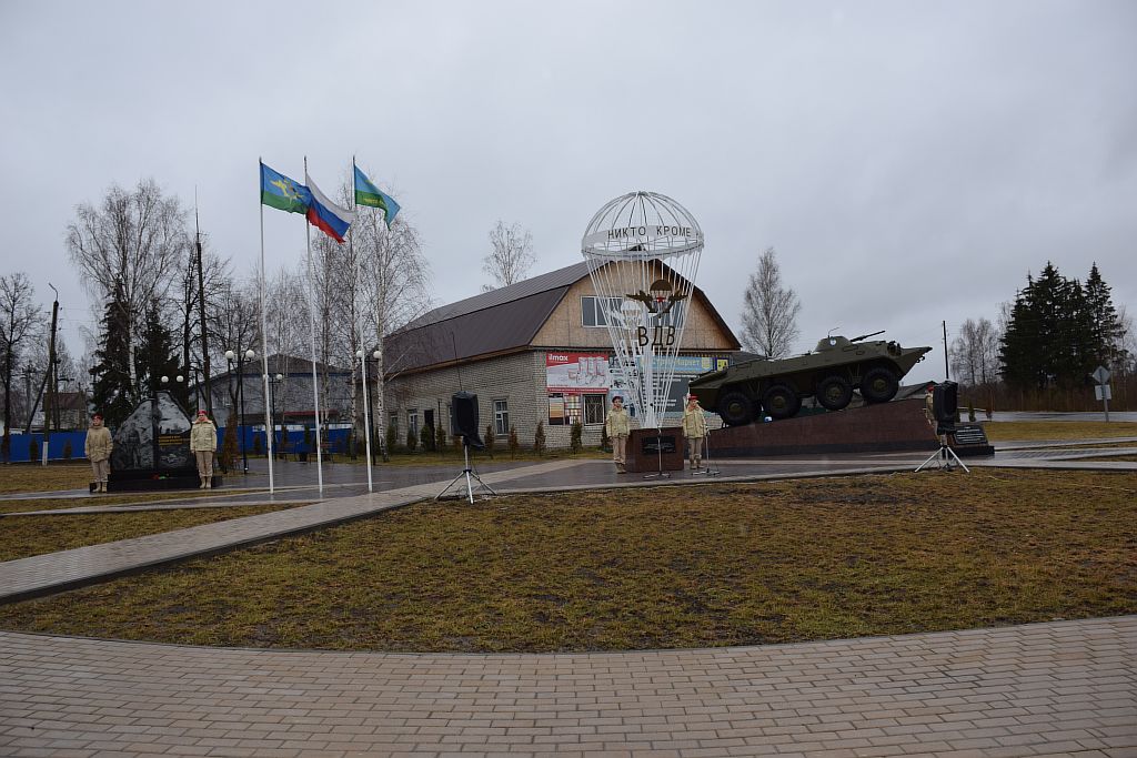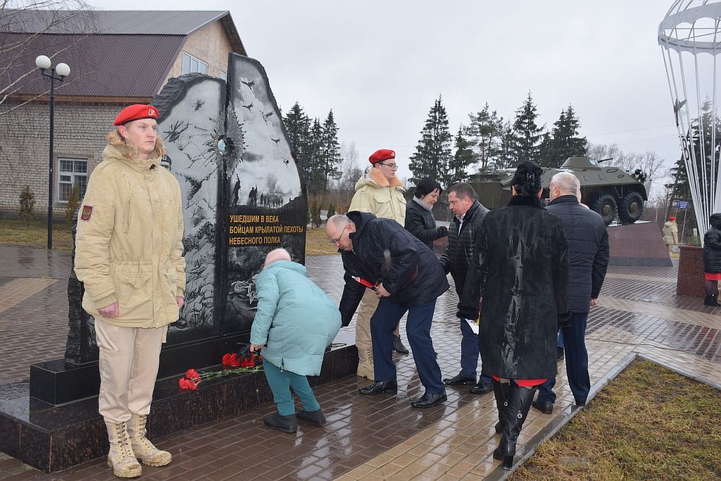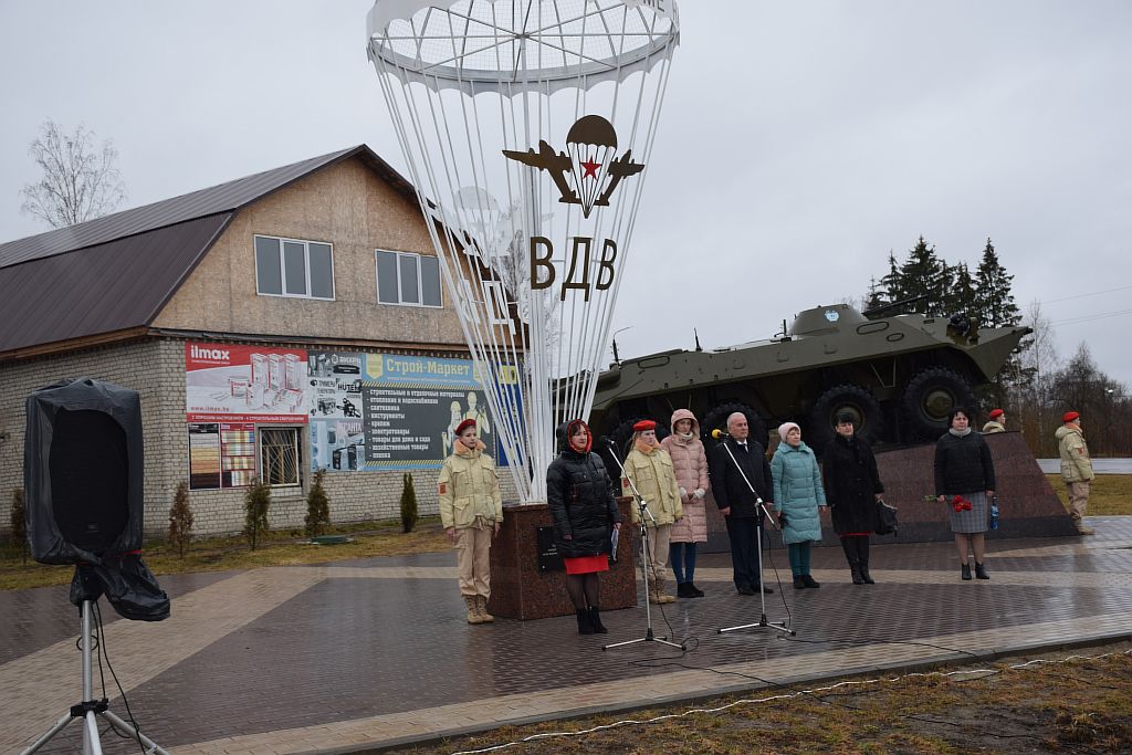 И вот, 2 апреля, в День единения народов Беларуси и России новая встреча в Сураже. Соседи пригласили к себе команды по мини-футболу и волейболу нашего и Костюковичского районов. Перед началом соревнований в сквере воинов-десантников состоялся митинг, на котором выступил глава администрации Суражского района Владимир Риваненко, а затем представители делегаций, Хотимскую представлял начальник отдела по образованию, спорту и туризму райисполкома Олег Ткачев, возложили к памятнику цветы.