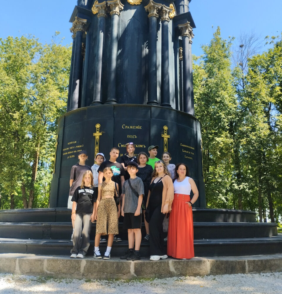 Наша экскурсия продолжилась по паркам города. Побывали у монумента, посвященного Отечественной войне 1812 года. Это одна из достопримечательностей и называется «Памятник защитникам Смоленска 4-5 августа 1812 года».