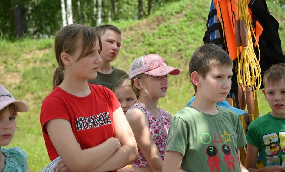 С ребятами из школьного оздоровительного лагеря Тростинской базовой школы спасатели