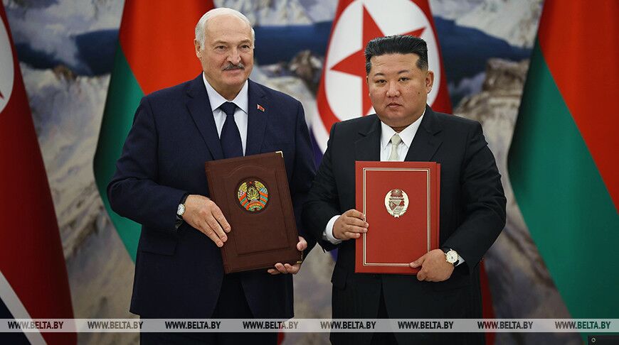 Подписи под договором поставили лидеры стран Александр Лукашенко и Ким Чен Ын.