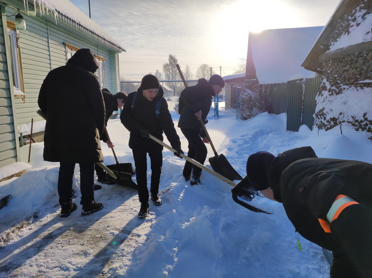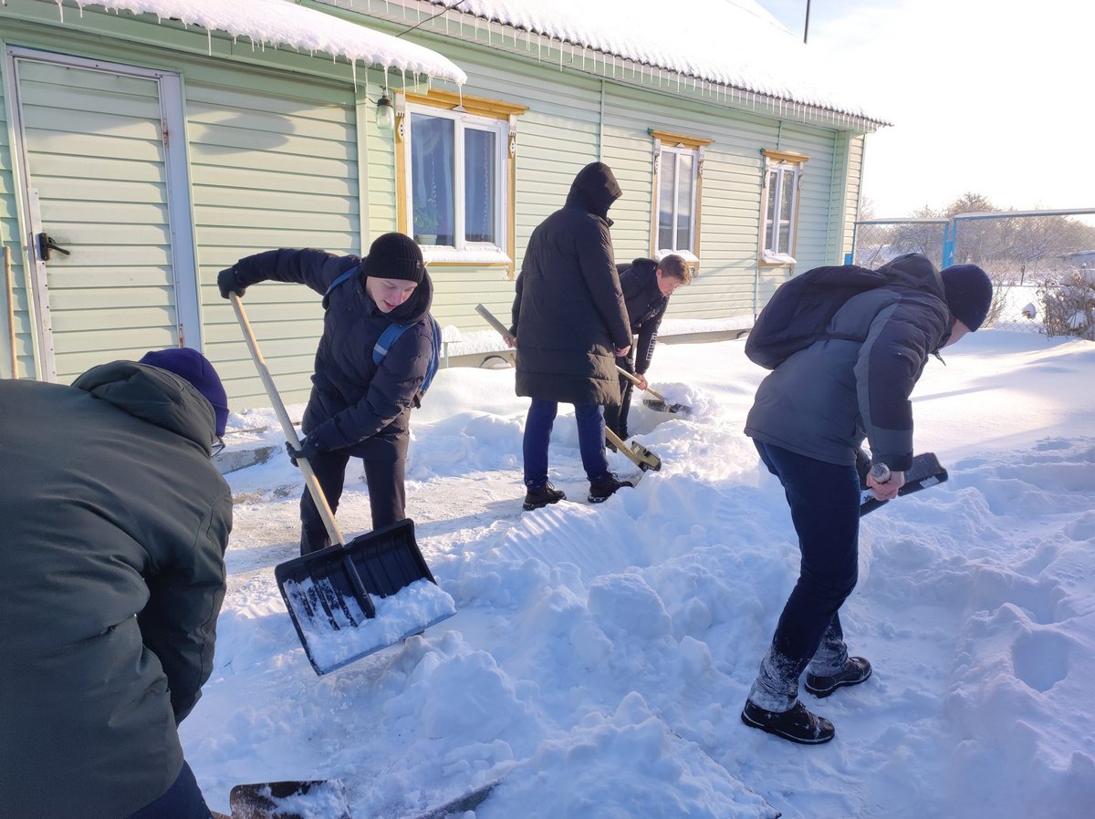 Учащиеся школы района активно вовлечены в волонтерскую деятельность. Это организация всевозможных акций, мероприятий, бесед, флешмобов. Одним из самых важных направлений является помощь пожилым людям. В зимний период наша забота особенно важна, востребована. Вот и сейчас, после снегопадов, наши волонтеры с самого утра вооружены лопатами и спешат на помощь.