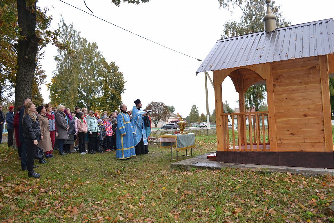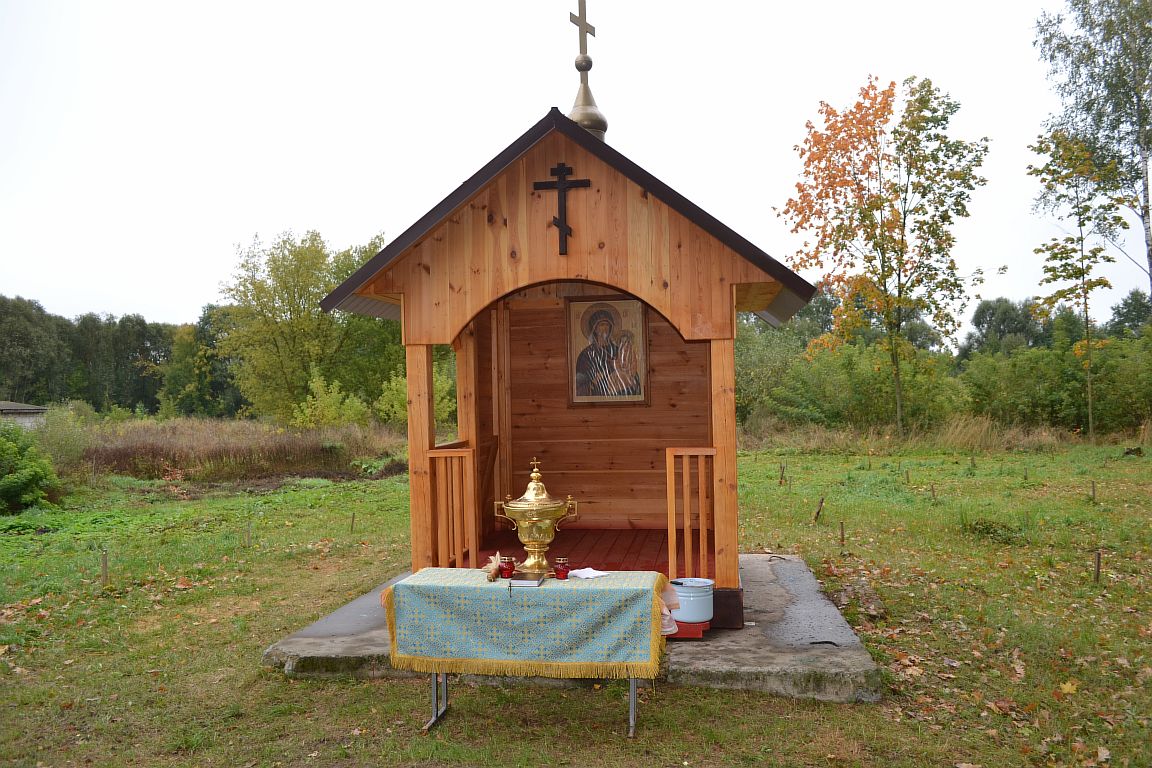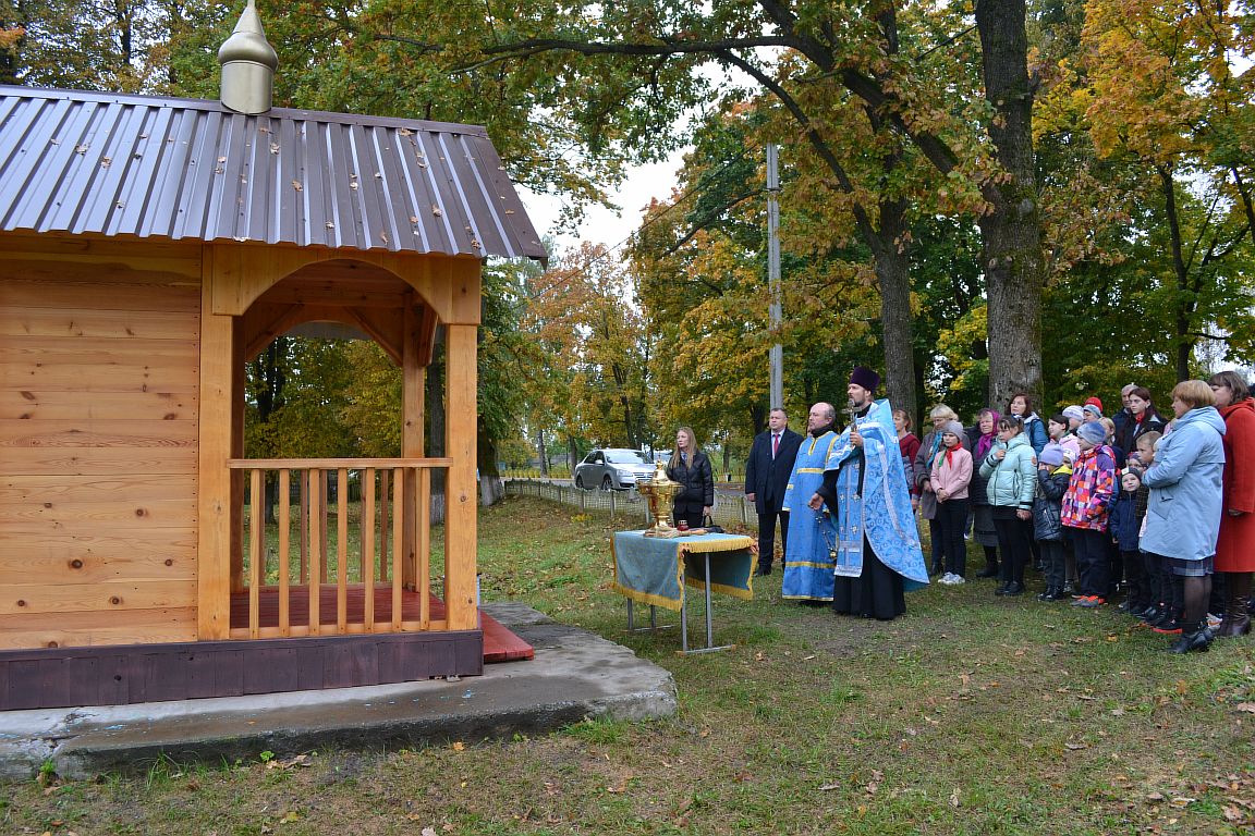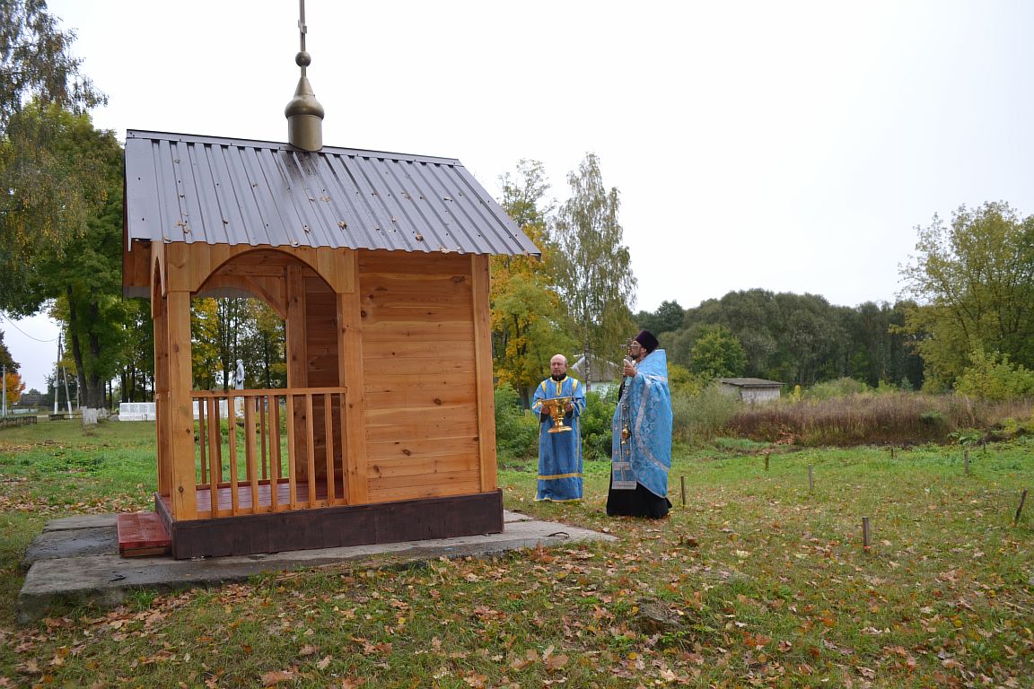 И вот новая инициатива со стороны Игоря Козлова в 2022 году. Задумал он построить небольшую часовню, здесь же, в центральной части агрогородка. Предварительно получив благословения священника Павла. Его начинание поддержали Александр Караскевич, Дмитрий Голобурдин, Александр Бычков, Алексей Громов, Алексей Шкирьятов, Сергей Балыко и другие. Примечательно, что рядом расположен памятник воинам, погибшим во время Великой Отечественной войны. Здесь же посадили деревья хвойных пород.