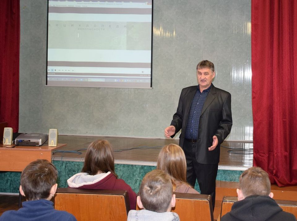 Безопасность детей всегда стоит на первом месте не только в учебное время, но и в период каникул. В это время, когда дети предоставлены сами себе, безопасности уделяется особое повышенное внимание и важно, чтобы ребята свою энергию направляли в правильное русло. В связи с этим перед ребятами выступил Леонид Воробьев, председатель ОСВОД, который рассказал о правилах безопасности на льду. А еще Леонид Иванович настоятельно рекомендовал детям не выходить на лед без сопровождения взрослых и советовал запомнить, что безопасного льда в принципе не бывает! Ребята посмотрели видеофильмы, в которых рассказывали как вести себя, если ты провалился под лед, как оказать первую помощь пострадавшему, а также фильм, главным героем которого является мальчик, друг которого на его глазах провалился под лед.