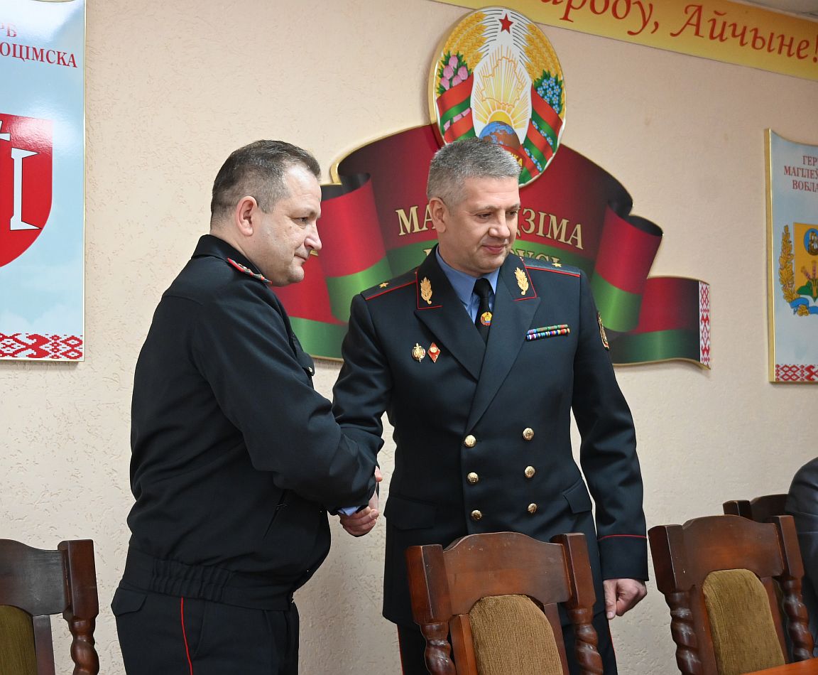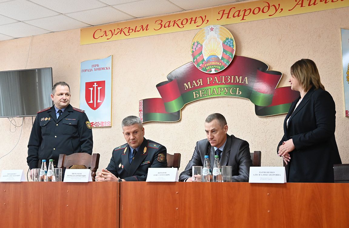 Представить нового руководителя коллективу приехал начальник УВД Могилевского облисполкома генерал-майор милиции Игорь Владимирович Щербаченя, а также прокурор Хотимского района Олег Лимаров и председатель суда Хотимского района Алеся Парфененко.