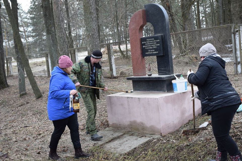 Фотофакт: сотрудники Хотимской центральной и детской библиотек навели порядок на месте захоронения еврейского населения