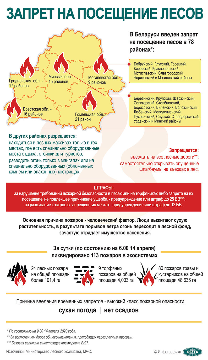В лесах Костюковичского и Хотимского районов с 15.04.2020 года объявлен запрет на посещение лесов в связи с установившимся 4-ым классом...