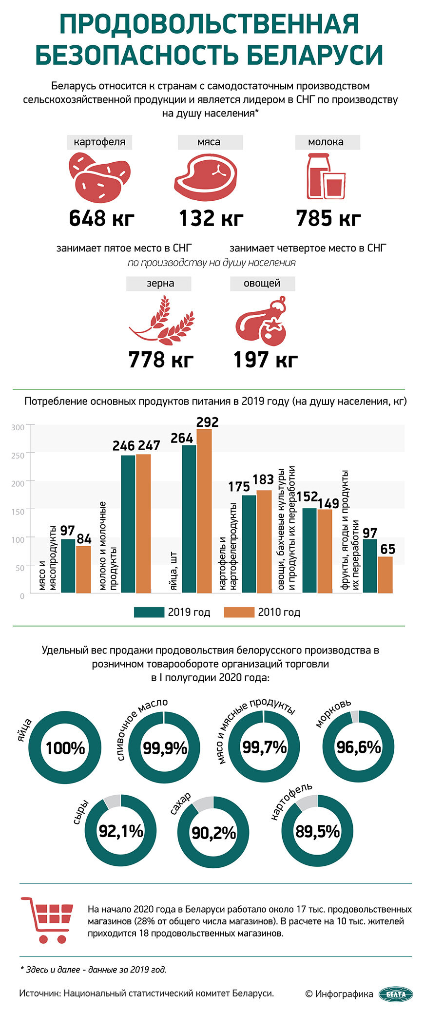 Беларусь относится к странам с самодостаточным производством сельскохозяйственной продукции и является лидером в СНГ по производству на душу населения*: картофеля...