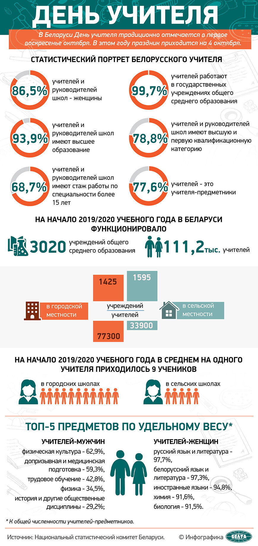 В Беларуси День учителя традиционно отмечается в первое воскресенье октября. В этом году праздник приходится на 4 октября. Статистический портрет...
