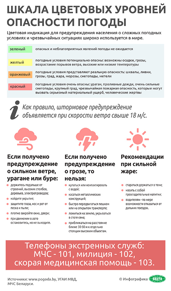 Шкала цветовых уровней опасности погоды