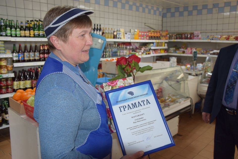 Продавец Вера Турунова получила награду за добросовестный труд