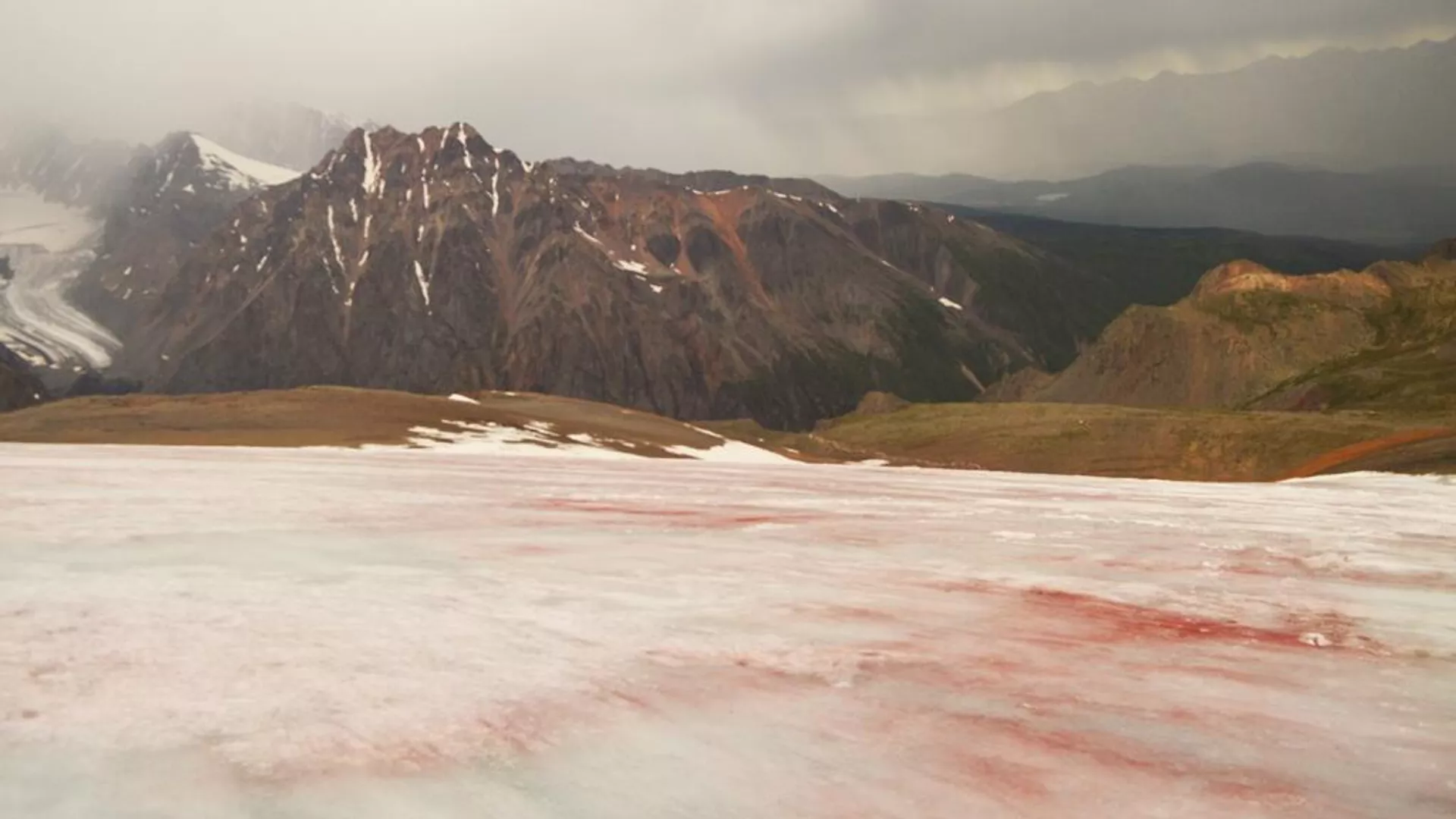 В Республике Алтай порозовел ледник