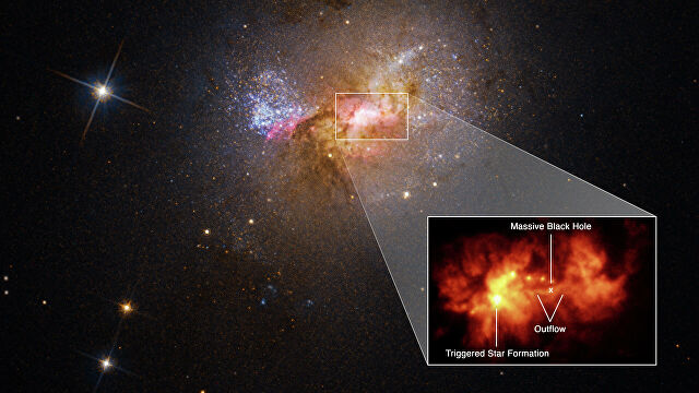 Телескоп «Хаббл» обнаружил стимулирующую звездообразование черную дыру На снимке космического телескопа «Хаббл» астрономы увидели мост из горячего газа, соединяющий черную дыру в...