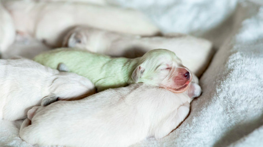 В Германии родился щенок с зеленой шерстью